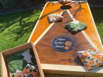 Score points by throwing your team's bags into the opposing board or through the hole....first team to 21 points wins bragging rights!